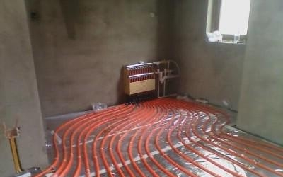 所有地暖管接好以后,必须做打压实验,试验合格证明水管完好、没有漏点,再用水泥把地暖管埋上;卫生间如果铺地暖,一般先刷防水,上面再铺地暖。