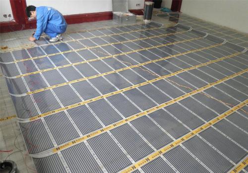 发热电缆,安装方式和水地暖一样,湿式铺装,电线要埋在水泥里;电热膜,把电线嵌在膜里,干式铺装,不能接触水泥,因此电热膜地暖上面不能铺瓷砖,只能铺木地板,叫做干式铺装。