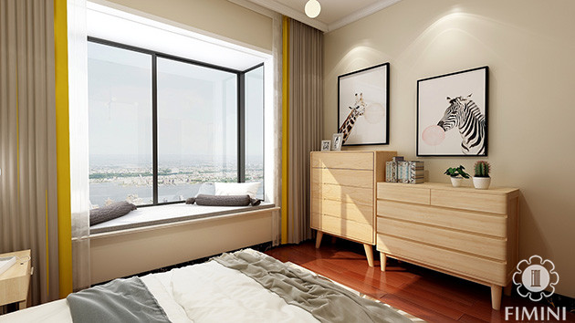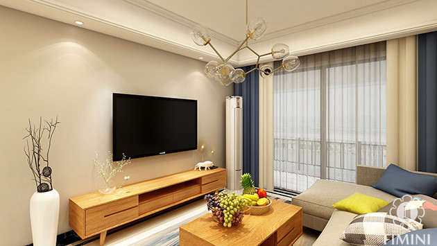 电视背景墙,交房的时候是一面大白墙,所以在设计的时候也是使用同一种色调搭配,加上原木色电视机柜以及白净花瓶等一些小饰品的装饰,空间的整体性和统一性更协调!