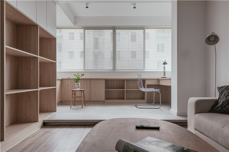 如果家里没有书房又需要个工作区域,那可以试一下在阳台靠墙的一面定制书架,另外一边摆放书桌和椅子。阳台视野开阔,入眼之处就是窗外的美景,工作累了向外望望就很解乏。不过这种方式只适合封闭式阳台。