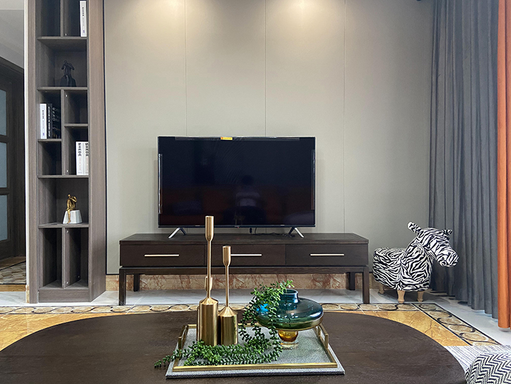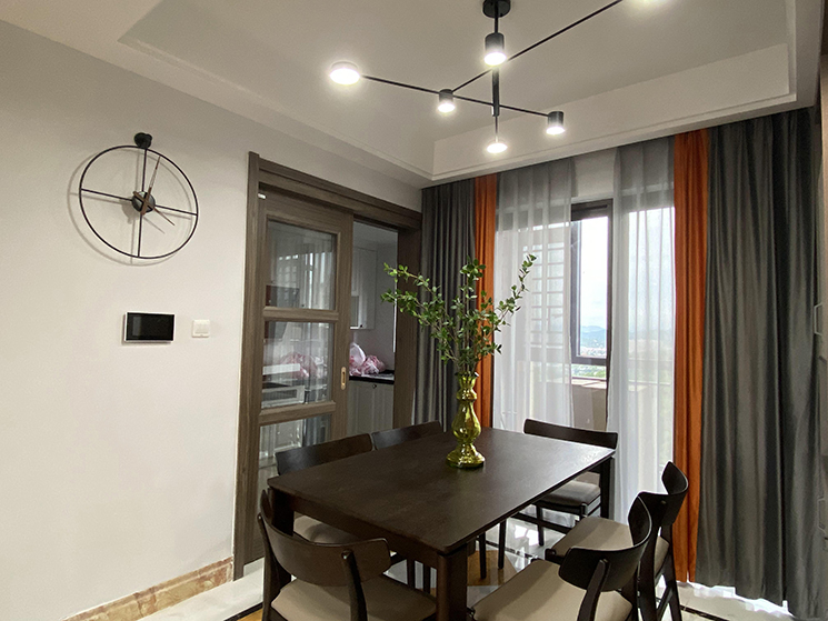 然后再用一盏网红吊灯来进行空间装饰点缀,一下子就将现代品位家居的轻奢感渲染了出来,几何灯具既起到很好的装饰感又一点都不张扬,用在这里非常合适。
