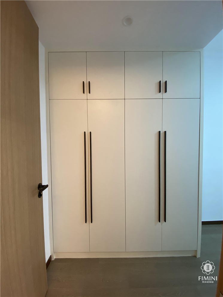 在与业主沟通的过程中业主表达出父母对于房间的要求朴素实用一些,所以我们在父母房没有做过多的设计,比较简单。在进门处我们设计了一组到顶的衣柜来增强整个空间的储物功能。儿童房因为忘记拍照了,所以没有进行实景地展示,现场非常漂亮。好了,今天的分享就到这里了,以后会经常更新更多精装房案例,想看什么风格都可来电咨询400-0731-041!